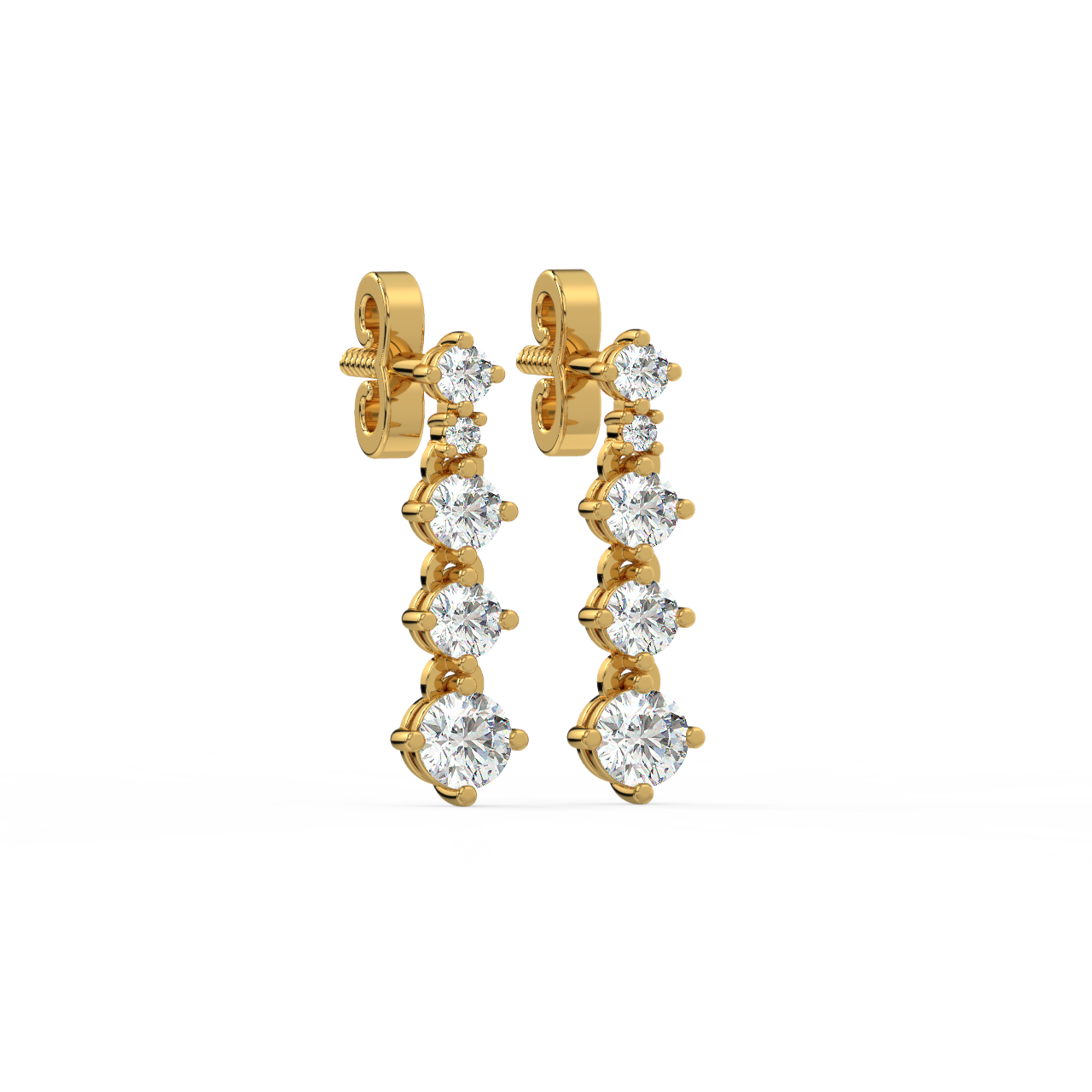 ● Drop Earrings: Drop earrings, also known as dangle earrings, feature a diamond or cluster of diamonds suspended from a stud or hook. They can range from delicate designs with a single diamond to elaborate chandelier earrings with multiple dangling elements, offering sophistication and glamour.
